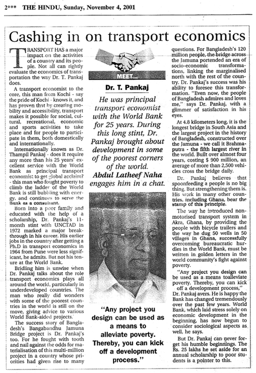 Click here for a personal profile of Dr. Pankaj as published by the "The Hindu" (Metro Edition) dated November 4, 2001.